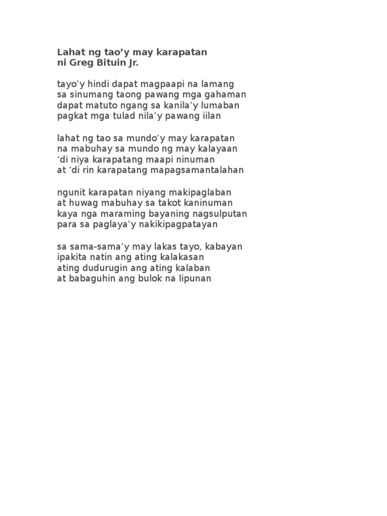Aa Tula Lahat Ng Tao Y May Karapatan Pdf