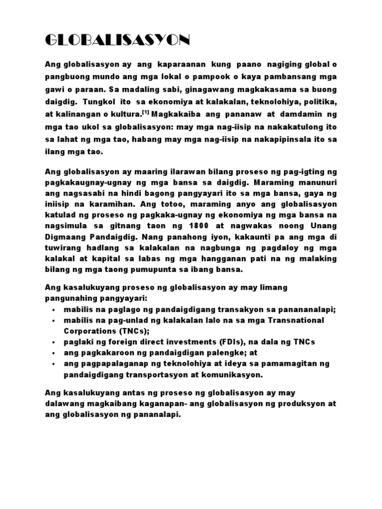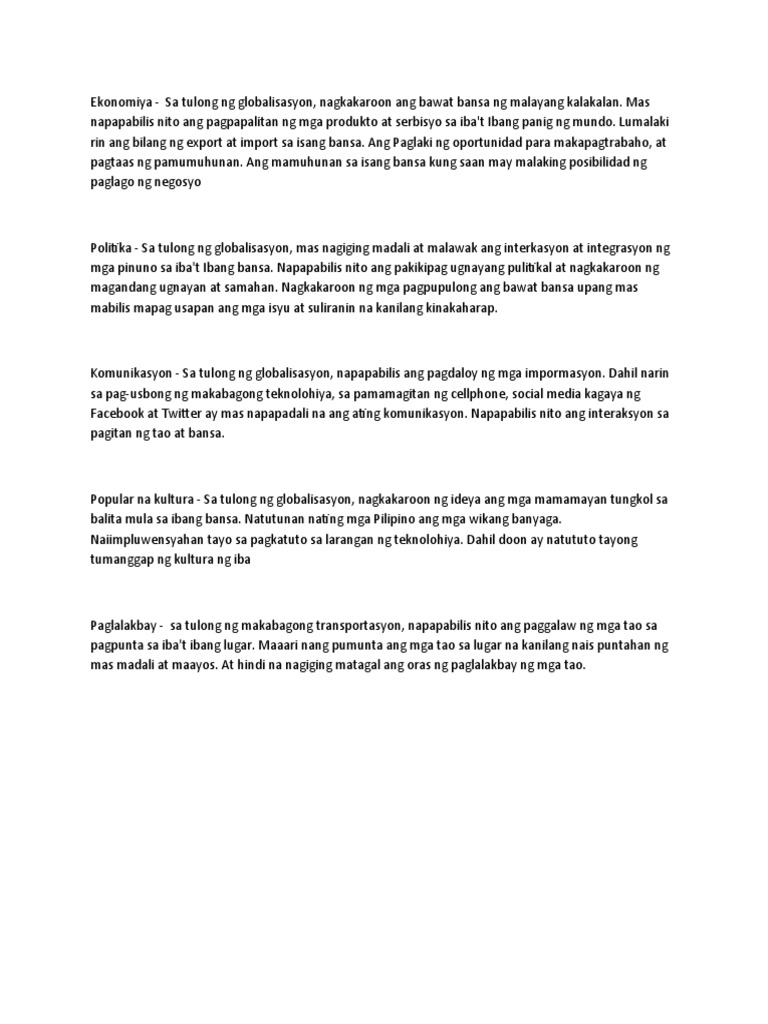 Education Filipino Art Sociology Cultural Studies. Hindi ka naman siguro Pilipinas na sa sobrang open inaagaw na sayo ang lahat ng meron ka hinahayaan mo pa. Ang Blog na ito tungkol sa Globalisasyon na aking gustong ibahagi sa ating nararanasang suliranin tungkol dito.