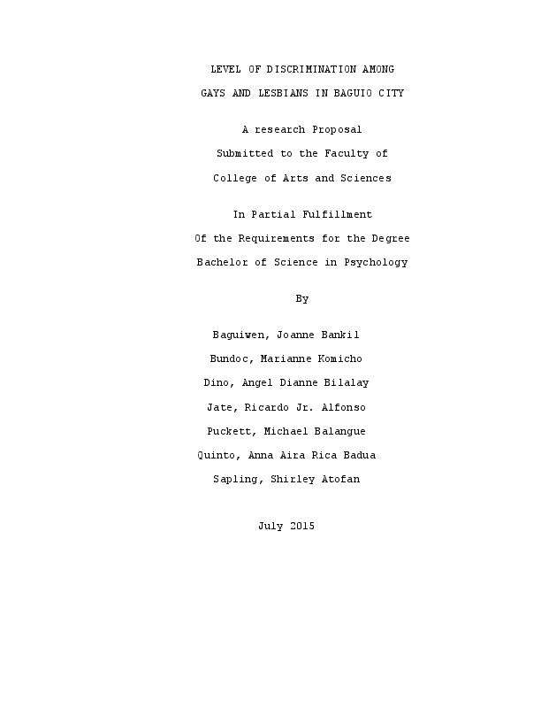 Doc Lesbian And Gay Discrimination In Baguio City Proposal Ely Sapling Academia Edu